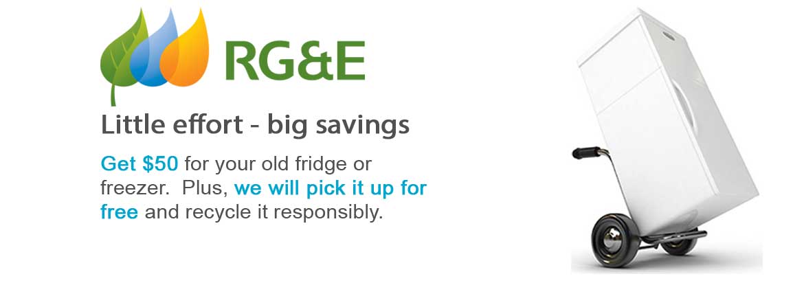 * Miniature and commercially sized refrigerators and freezers do not qualify. Any freezer must be a standalone unit. RG&E reserves the right to revise program requirements and incentive levels at any time. Rebates are subject to availability.