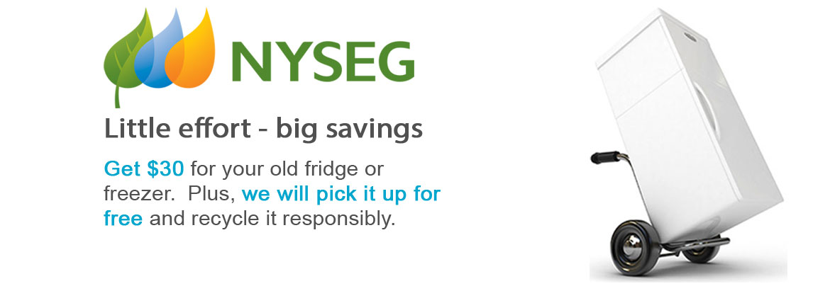* Miniature and commercially sized refrigerators and freezers do not qualify. Any freezer must be a standalone unit. NYSEG reserves the right to revise program requirements and incentive levels at any time. Rebates are subject to availability.